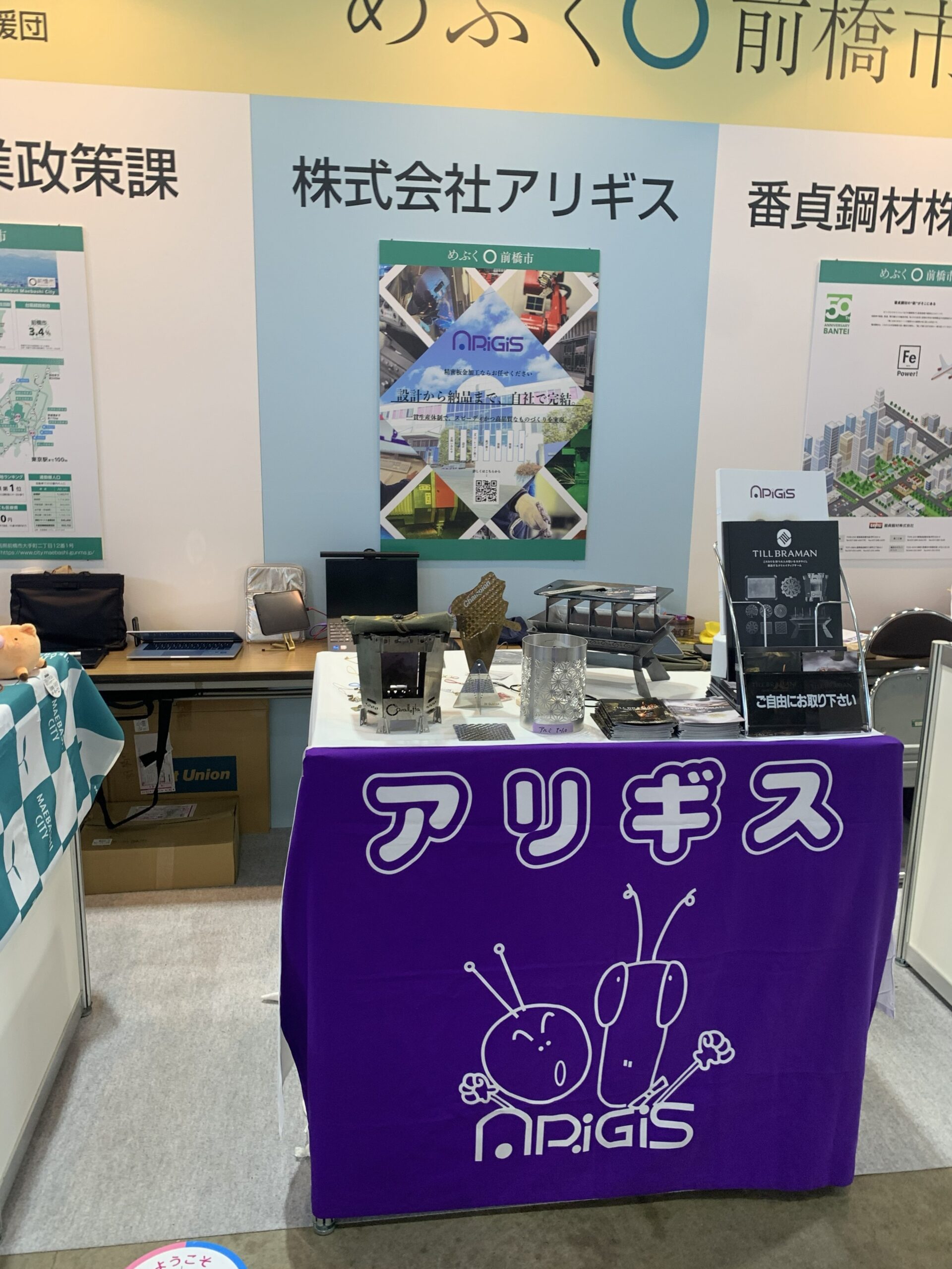お隣のブースのでは、番貞ニュースでも取り上げさせていただいた(株)アリギス様の金属加工の作品が展示されていました。