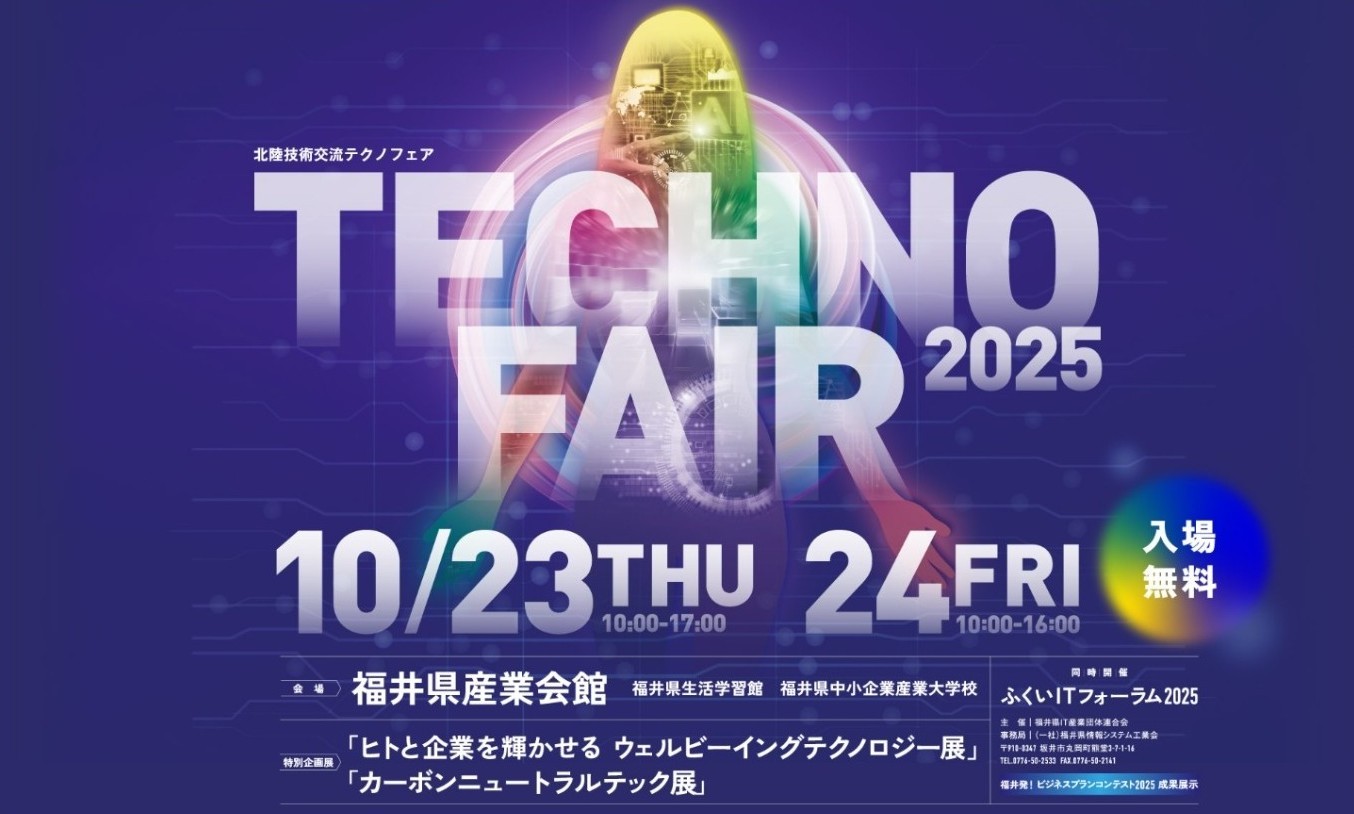 令和7年10月23~24日に福井県産業会館にて開催された北陸技術交流テクノフェア2025に出展いたしました