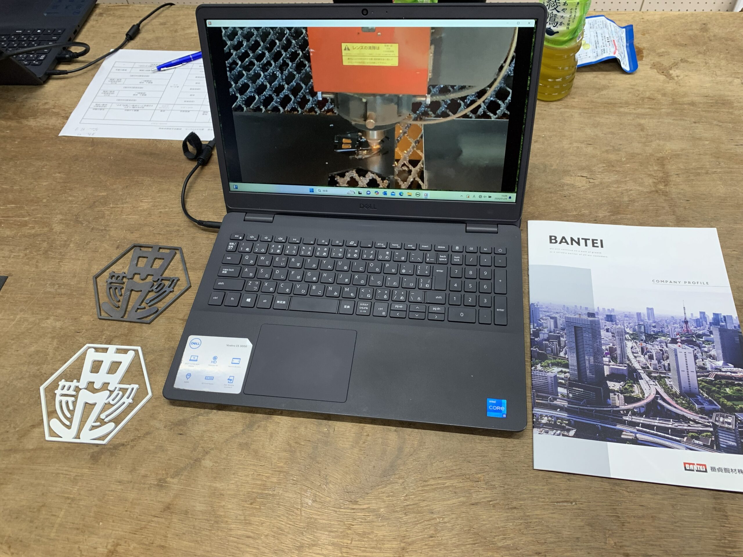 今回も、実際に鉄製品に触れてもらおうと思い弊社の切板工場で製作したプレートをいくつか持っていき、実際に加工している動画を流しました。